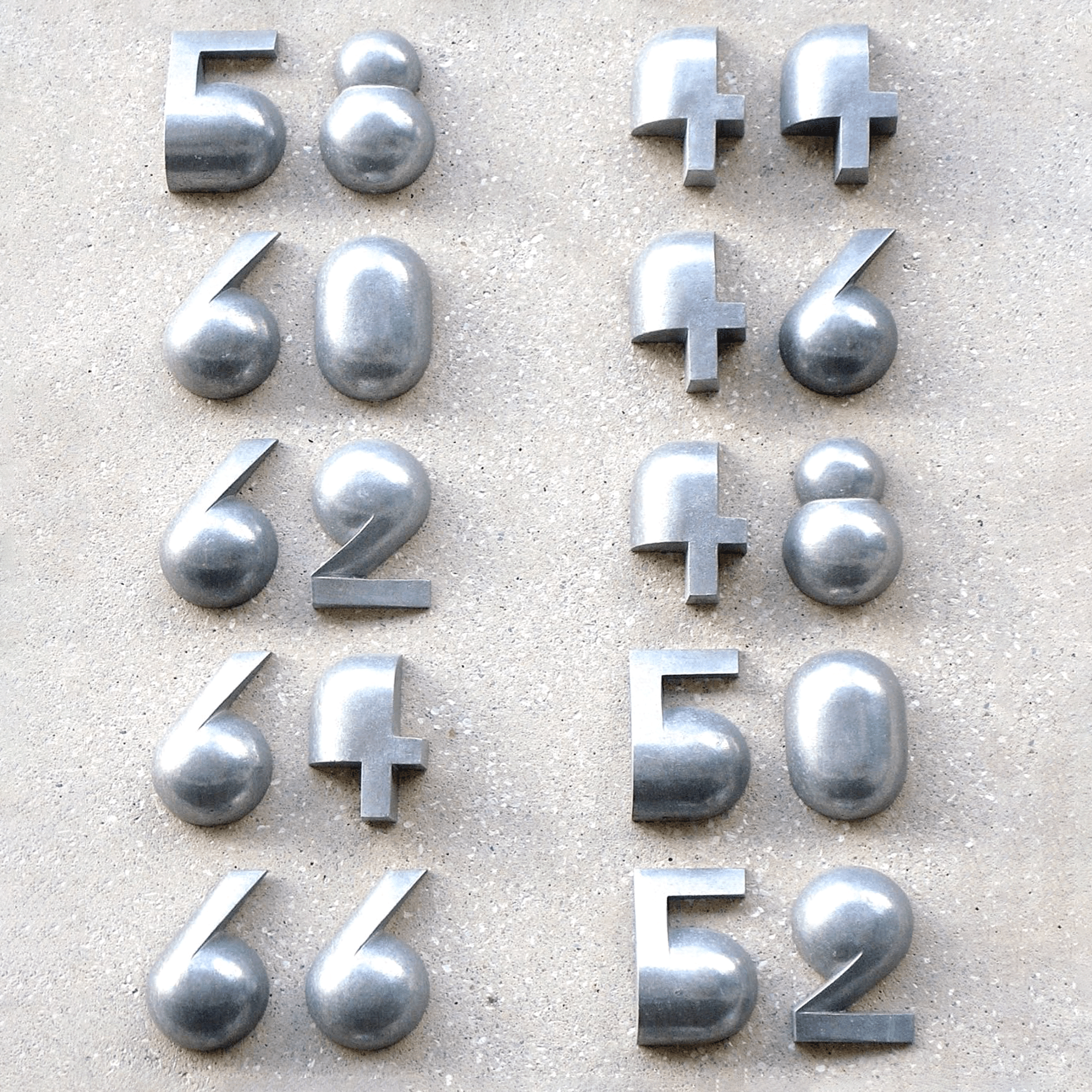 For Oudshoorn, an important principle was that each resident would have a sculpture of their own. To achieve this, he designed three-dimensional apartment numbers in outsized format, cast in aluminium. The numbers are the most individual references to the people who live in the respective apartments, and they are hung at eye level, so they can be touched. As every apartment has a separate address, each resident has his or her own sculpture, in the form of number on the facade. The result is a long series of numbers that hang vertically on the façade of the building, like huge, shining drops of rain. Each cipher measures 16.5cm x11cm x5.5cm. There are about 2000 ciphers in all.